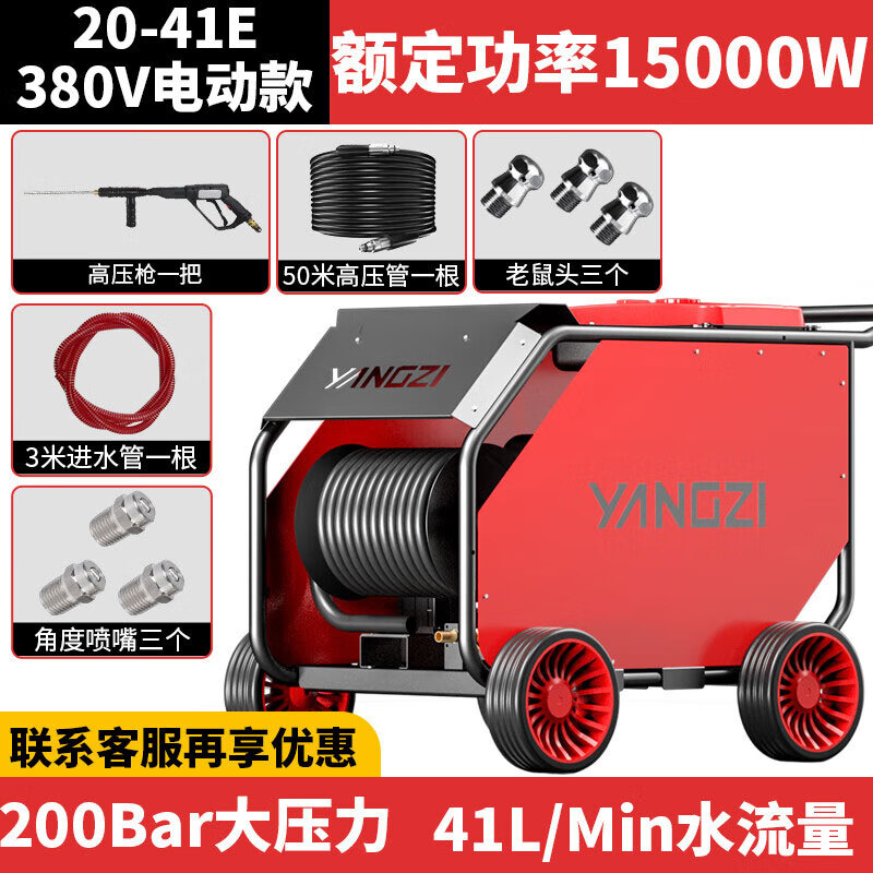 揚子YZ-20-41E電動管道疏通機疏通+清洗,一機在手清潔無憂;380V工業(yè)電使用作業(yè)有保障,2種接頭可選配針對不同沖洗種類,不同環(huán)境不同選擇。